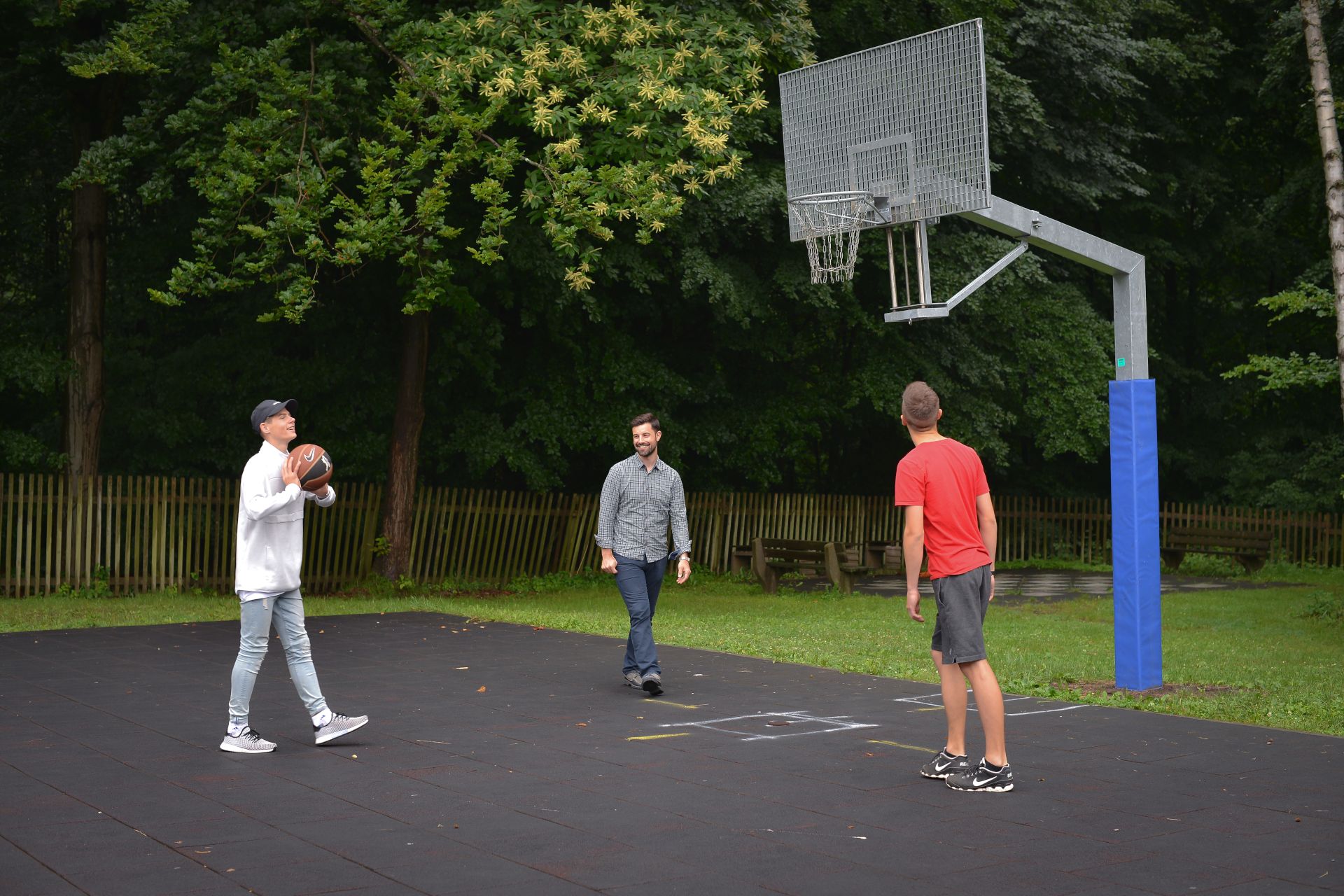 Ab Klasse 10 nutzen wir den Pausenhof und unser Gelände für den Sportunterricht. Hier ist viel Platz und das notwendige Gerät für Ultimate Frisbee, Volleyball, Fußball, Basketball ….